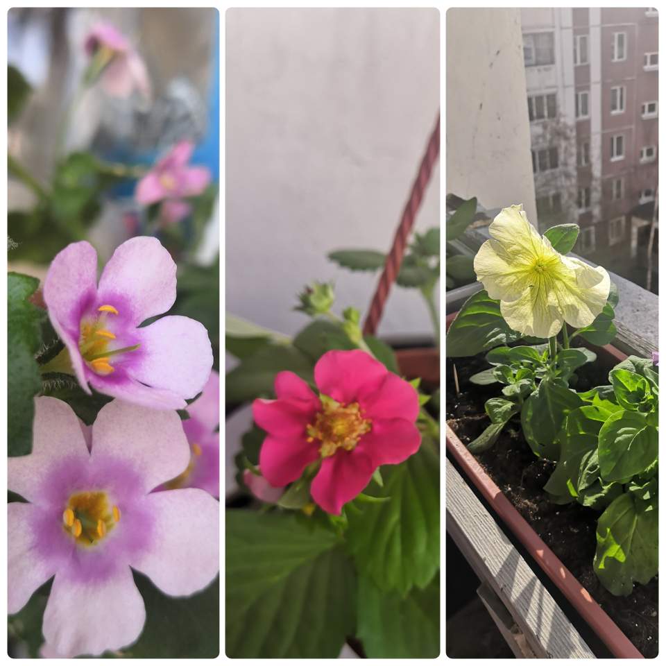 Купила на лоджию рассаду петуньи(надоело мне с ней возиться, как не танцуй - к маю зацветающие кустики не получить, штучек мне надо всего 8,плюс из семян никогда не знаешь точно, что вырастет, вечный кот в мешке, а тут уже выбираю, что нравится и надо), бакопу и кустик декоративной земляники на пробу. Еще там у меня растут лаванда, тимьян и розмарин (цветет уже во всю), розы, по паре кустов огурцов и жгучего перца