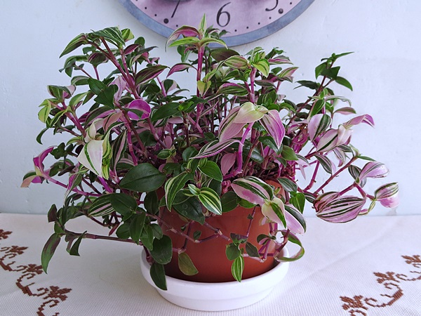 У меня традесканция была чисто фиолетовая и цвела нежно - розовыми цветочками. Потом стала хиреть, я ее со злости пересадила в более дешевый, но большой горшок и отнесла к себе на кафедру. Мамадорогая, как ей там хорошо, как она распушилась и зацвела. АЖ самой теперь жалко! Кстати, у меня спальня тоже бежевая, я задумалась. У меня в ней цветы с сочной зеленью: кротон, ципперус, замиокулькас, юкка, орхидеи и еще два цветочка, купленные на рынке. Это все на 2 окнах.