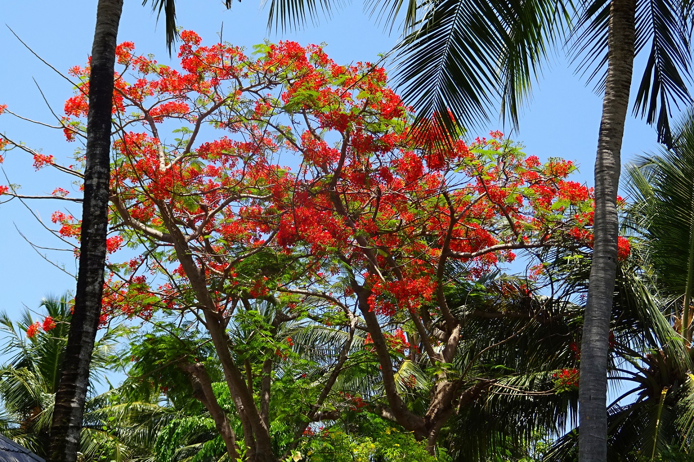 На фото держу в руке цветок делоникса королевского. Конечно дерево исключительной красоты, но дома можно завести только карликовую разновидность, которая вырастает 1,5-3 метра.