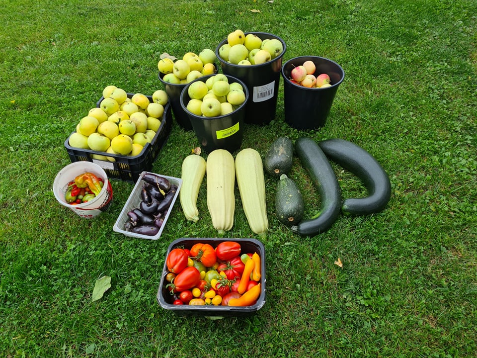 После вчерашнего ветра яблок упало ещё примерно столько же, сколько вчера собрали